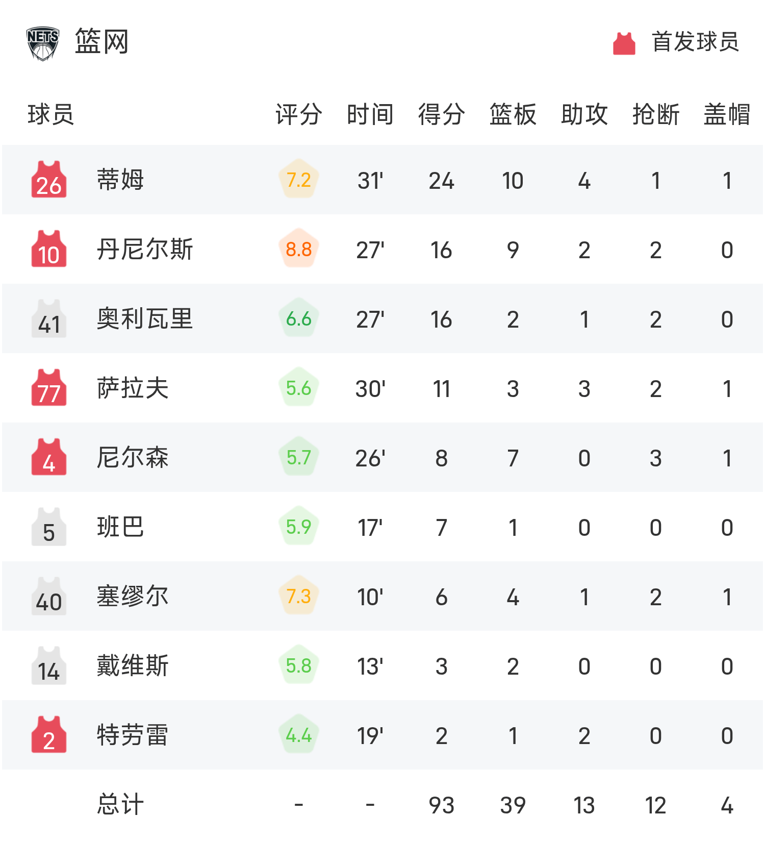 球员数据 查看更多