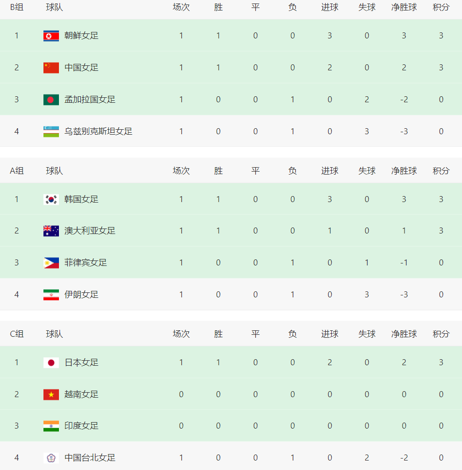 今日,C组首轮的两场比赛开打,包括日本女足VS中国台北女足、越南女足VS印度女足。