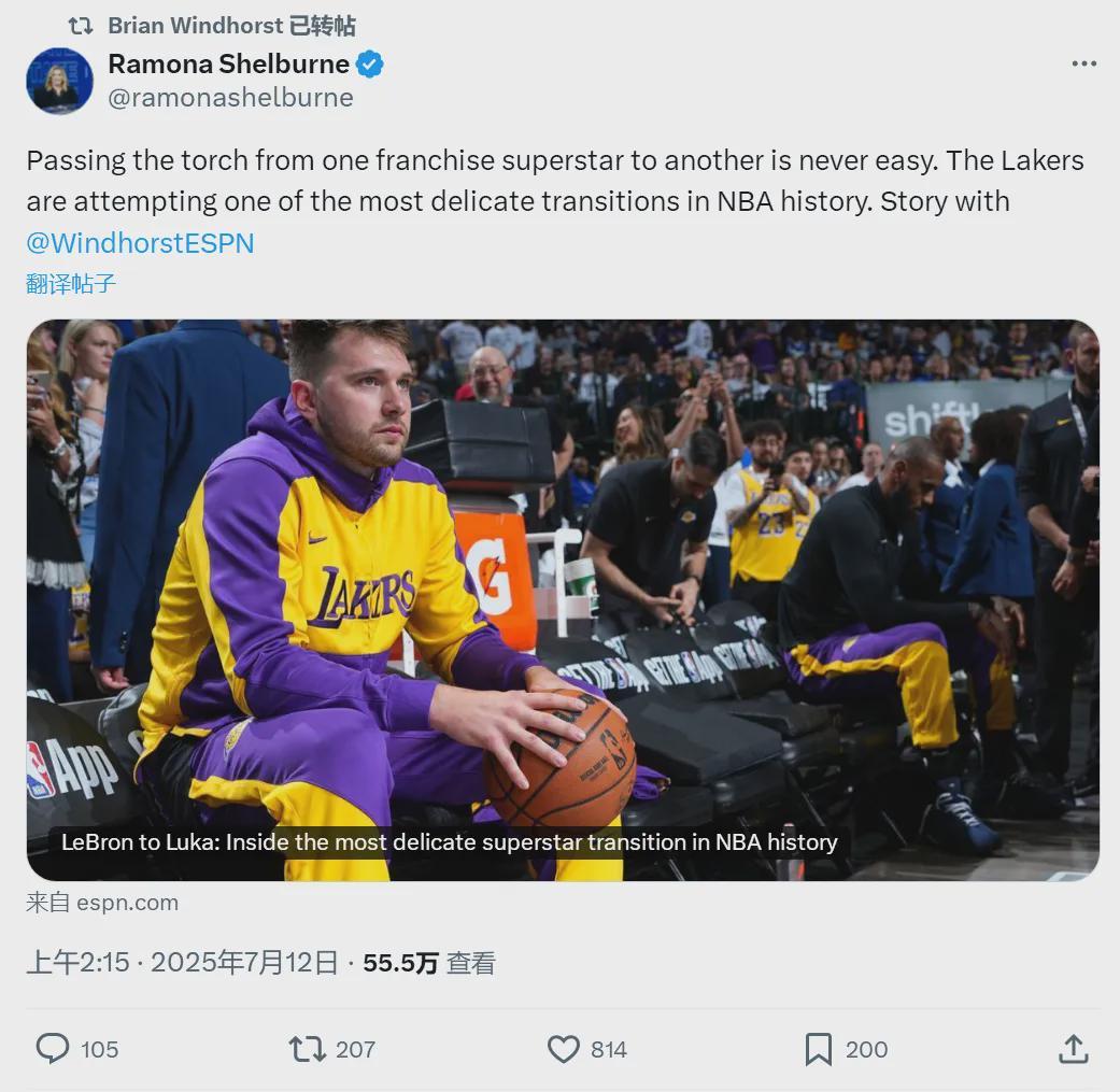 连东契奇的经纪人都参与了这次谈话,但湖人并未通知詹姆斯和里奇-保罗。此外,佩林卡还约定,今年夏天去欧洲看望东契奇。今年8月3日之后,东契奇有资格跟湖人提前续约。不过他要先打欧锦赛,所以等到9月份再跟湖人续约。