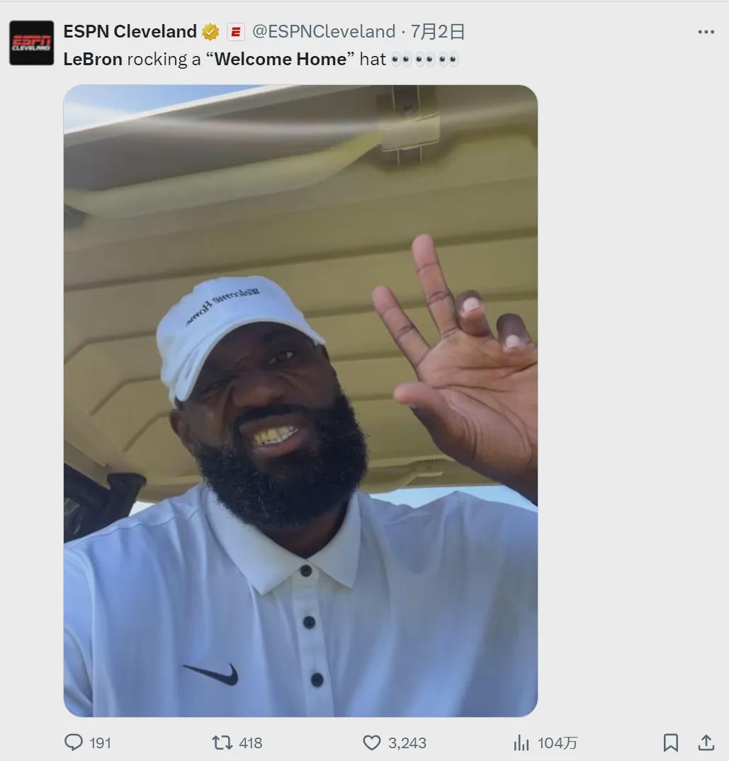 今年休赛期,詹姆斯戴着Welcome Home(欢迎回家)的帽子自拍,并且回到骑士的训练馆训练。那骑士会不会交易得到詹姆斯?NBA记者Sam Amico表示,骑士对交易没有兴趣,只想等湖人买断詹姆斯,骑士用老将底薪签下。